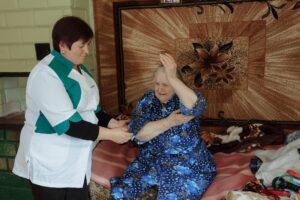 Starea de sănătate a doamnei Ecaterina s-a îmbunătățit de când beneficiază de îngrijire medicală la domiciliu. Datorită procedurilor și exercițiilor de recuperare pe care le facem împreună, încetul cu încetul a început să stea pe așezate, apoi să se ridice în picioare. Cu ajutorul premergătorului a reușit să facă primii pași prin odaie. Un alt rezultat important pentru dumneaei este că poate ridica mâna stângă și se poate pieptăna.