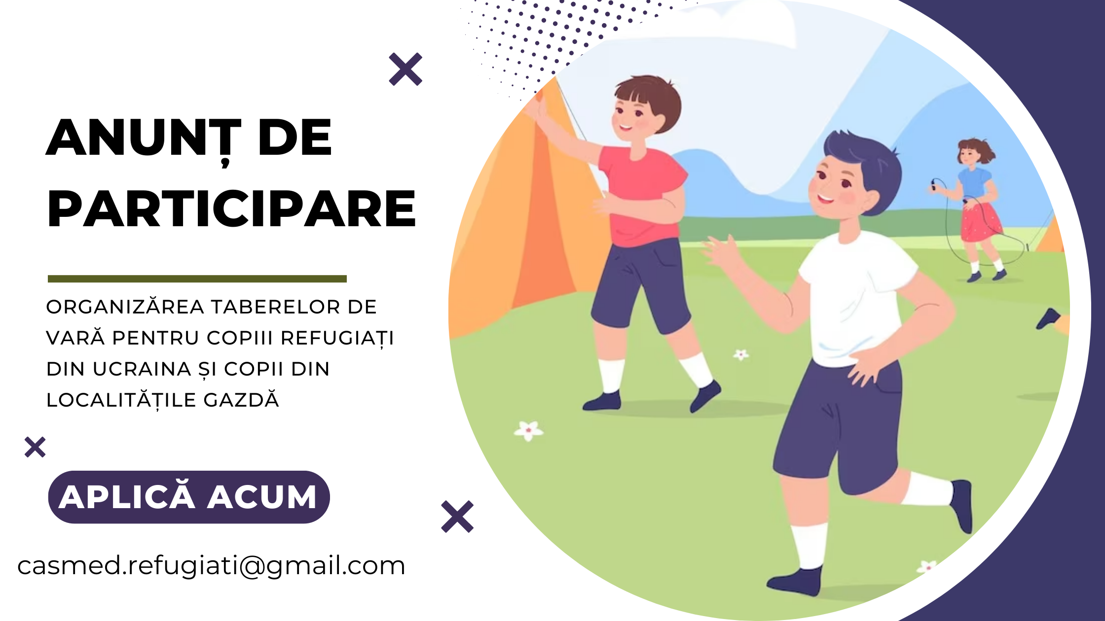 AO „CASMED” invită autoritățile publice locale, asociațiile obștești, să depună un concept de proiect în vederea organizării taberelor de vară pentru copiii refugiați din Ucraina și copii din localitățile gazdă.